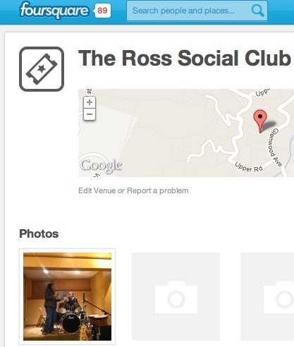 So this week a well known VC made the trek to my writing retreat in Marin, and we hung out in a room that until this year was a large storage closet behind my garage. I rethought the space, soundproofed it, added a hodge-podge of AV gear and musical instruments, and named the place the “Ross Social Club” – on Foursquare, anyway. I haven’t really told anyone that I gave the place a name, but it was sort of an experiment – would anyone ever check in there besides me?